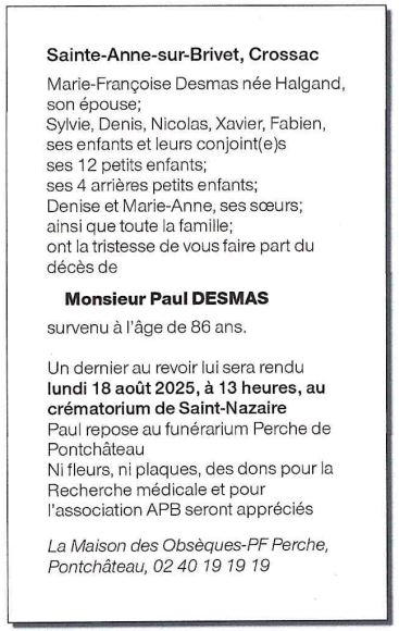 Décédé à Saint-Nazaire (44600, France) le dimanche 10 août 2025 à l'âge de 86 ans