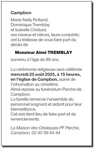 Décédé à Campbon (44750, France) le dimanche 17 août 2025 à l'âge de 89 ans