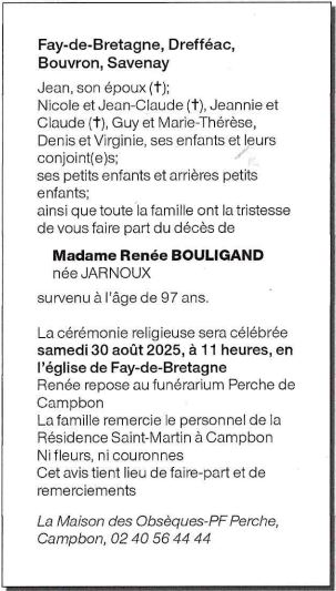 Décédée à Campbon (44750, France) le lundi 25 août 2025 à l'âge de 97 ans