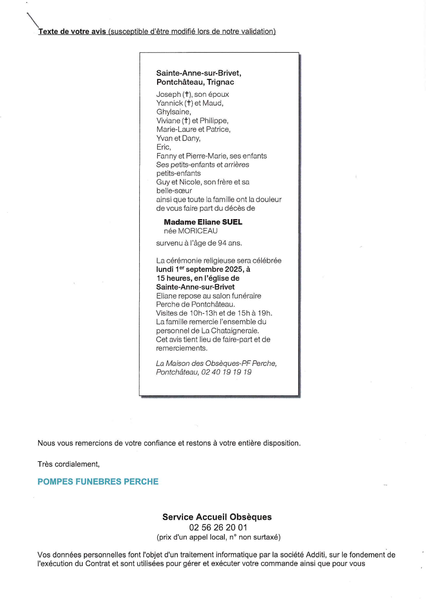 Décédée à Pontchâteau (44160, France) le mercredi 27 août 2025 à l'âge de 94 ans
