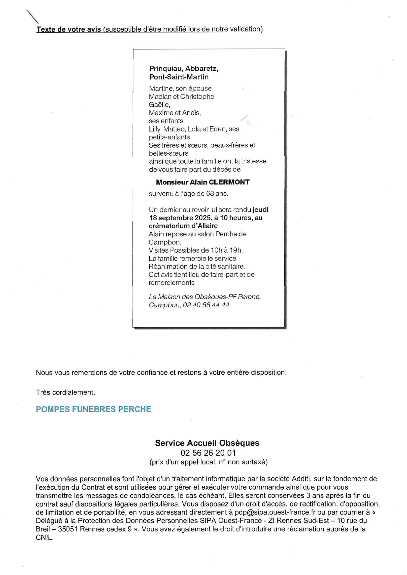 Annonce nécrologique