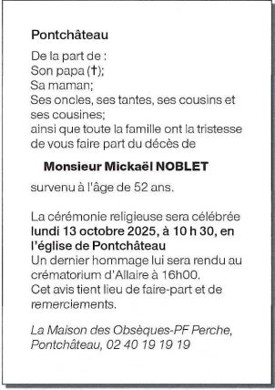 Décédé à Pontchâteau (44160, France) le dimanche 5 octobre 2025 à l'âge de 52 ans