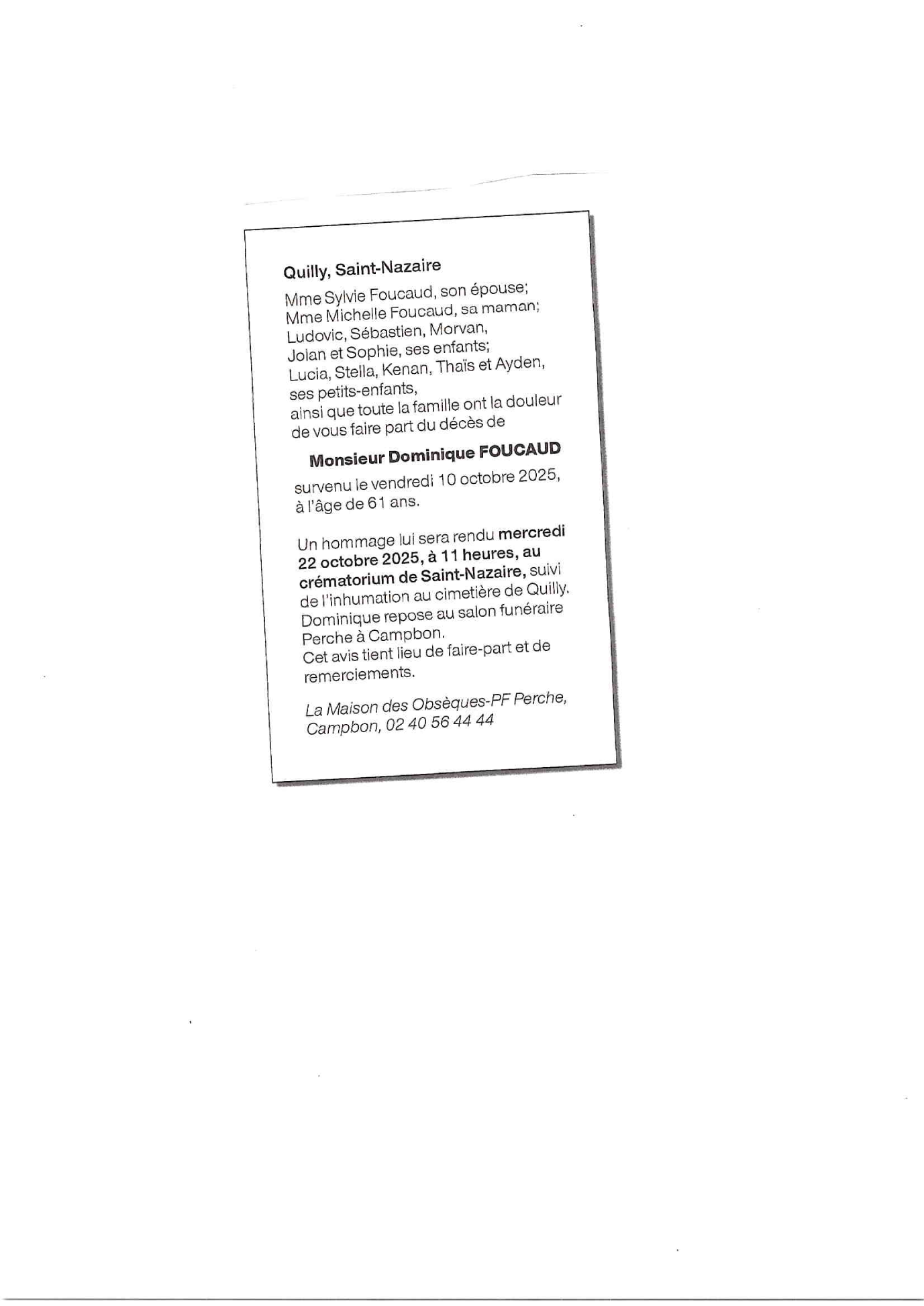 Décédé à Prinquiau (44260, France) le vendredi 10 octobre 2025 à l'âge de 61 ans