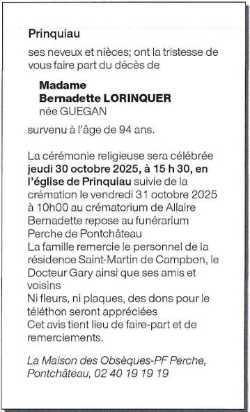 Madame Bernadette LORINQUER née GUEGAN