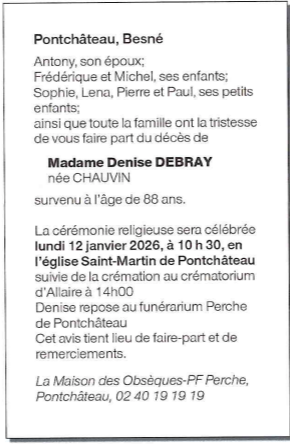 Décédée à Saint-Nazaire (44600, France) le dimanche 4 janvier 2026 à l'âge de 88 ans