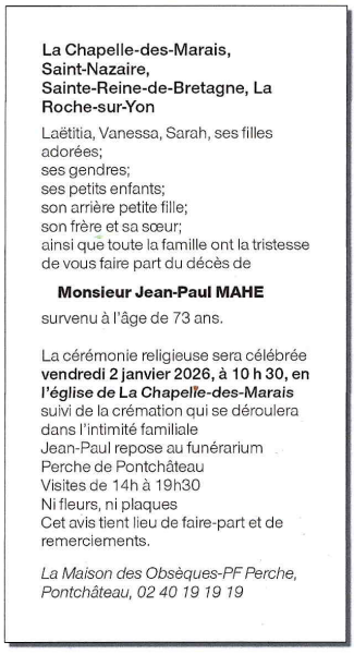 Monsieur Jean-Paul MAHE