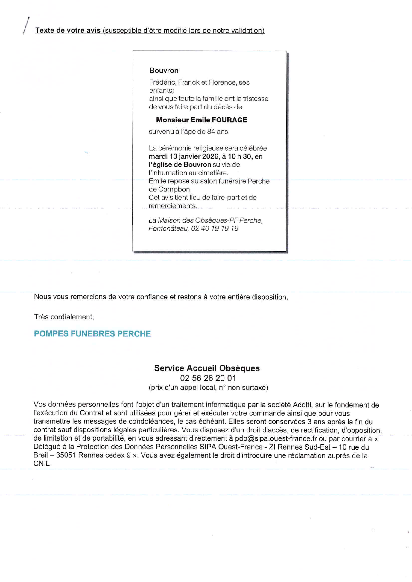 Annonce nécrologique