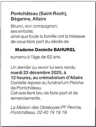 Décédée à Pontchâteau (44160, France) le lundi 15 décembre 2025 à l'âge de 62 ans