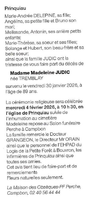 Madame Madeleine JUDIC née TREMBLAY